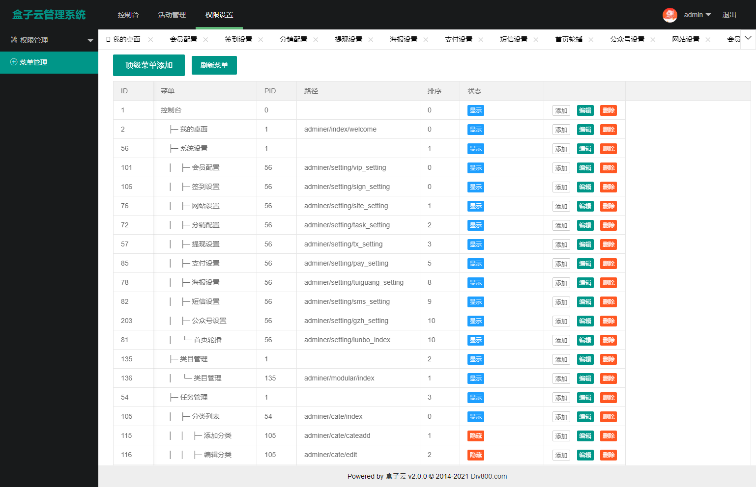 3)登录后台域名+/web/index.php 默认用户名admin 默认密码Div800.com;